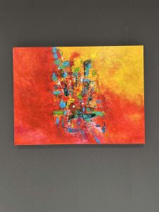 Stop by to see this collection of radiant art with the color red as the theme complimented with strokes and shades of other colors. There are both oils and acrylics paintings on display.